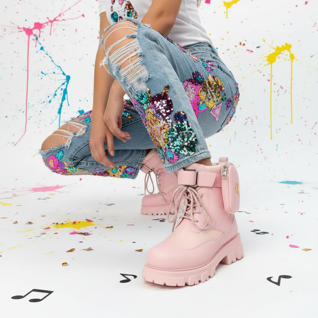 Renley Combat Boots w/ Mini Zip-Up Bag