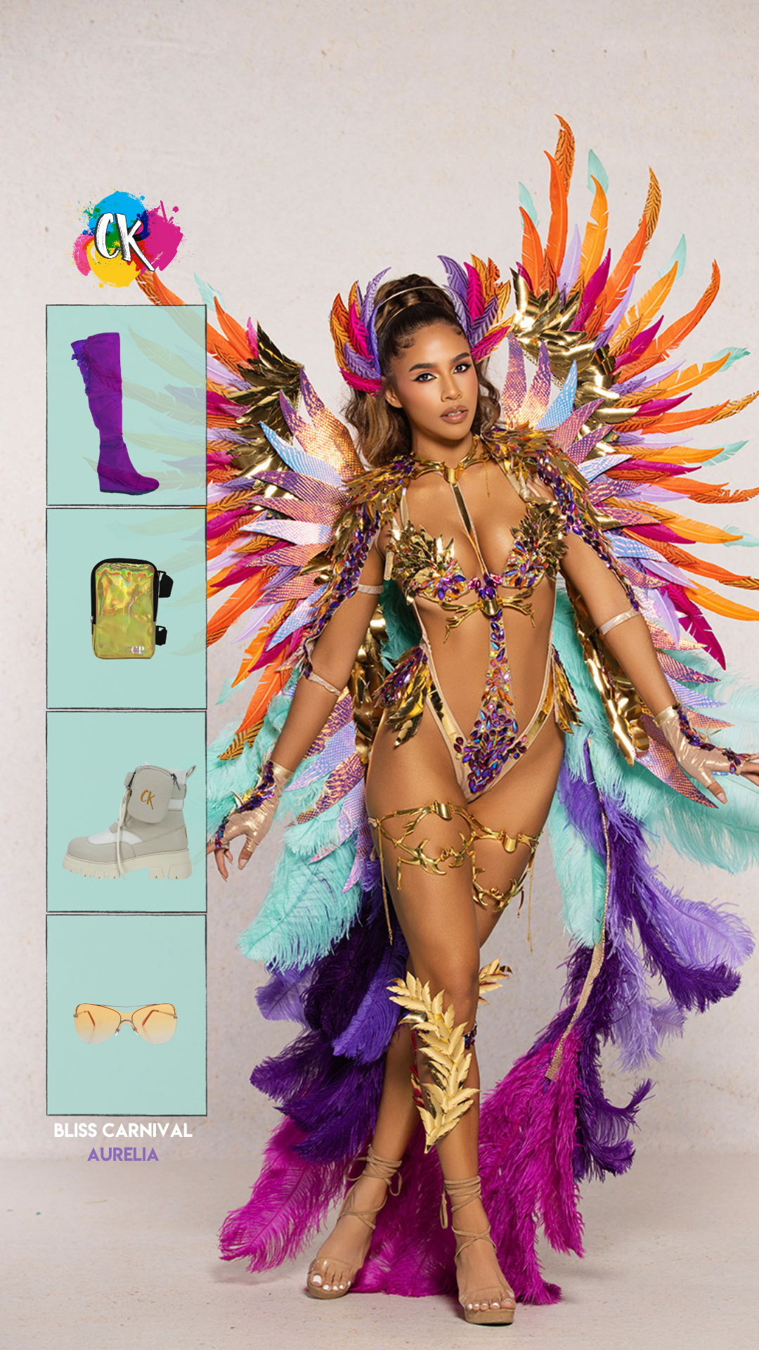 Scan below for inspiration on pairing your Bliss costume with bold boots, statement sneakers, and Carnival-ready accessories. Click here to discover more about Bliss Carnival.